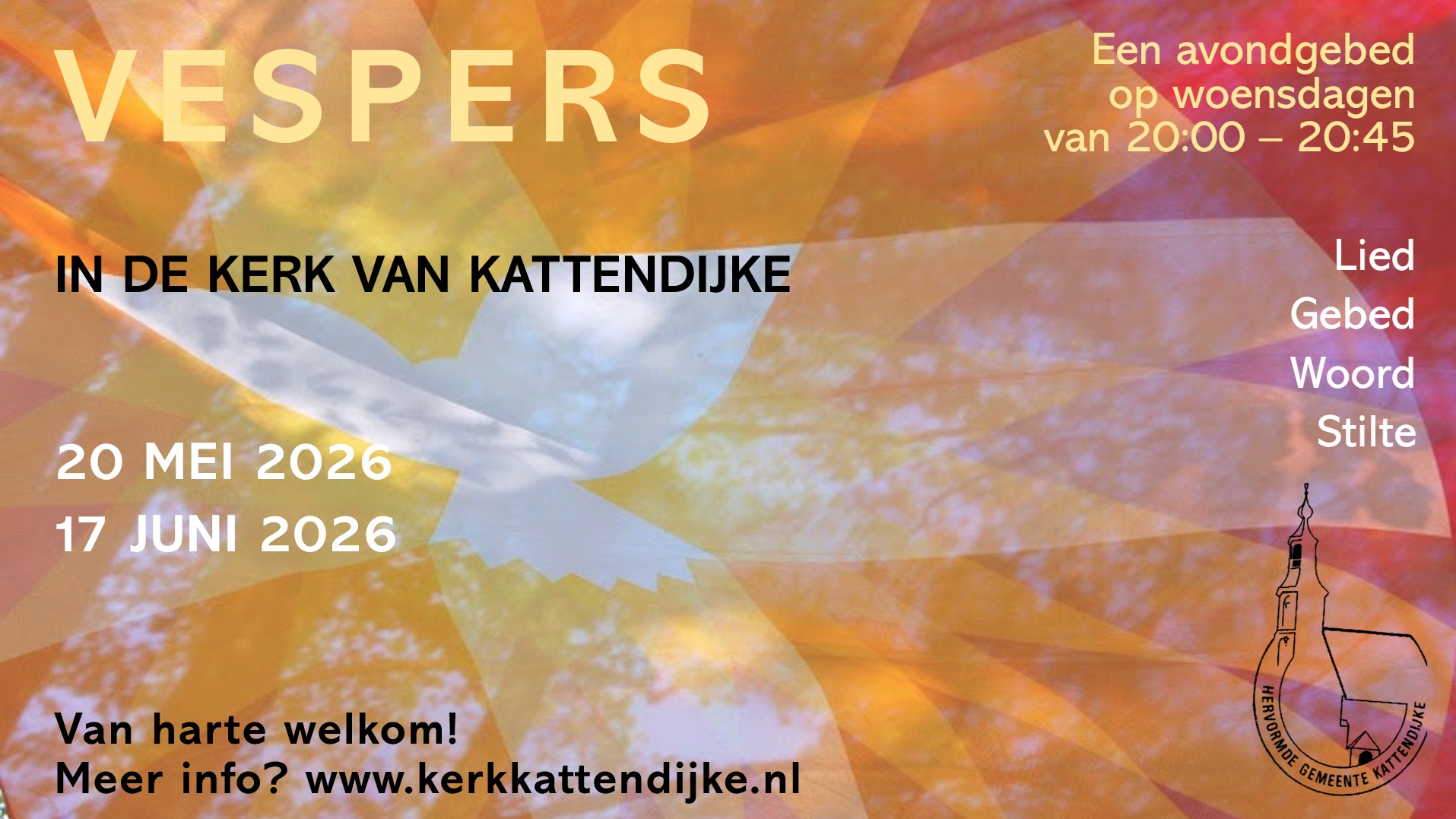 De vespers kenmerken zich door een eenvoudige en klassieke liturgie. We zingen uit het liedboek, er is een korte meditatie naar aanleiding van een Schriftgedeelte en een stilte van ongeveer 8 minuten. Doorgaans zijn er ongeveer 15-25 aanwezigen. Voor velen zijn de vespers een moment om even tot rust te komen. De vespers worden door verschillende mensen geleid. Wees van harte welkom!